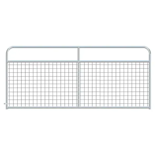 Alligator Brand wire filled tube gate is ideal for confinement of hogs, sheeps, or any other small animals. It is also recommended for use as an entry gate. Features 1-3/4" inch high tensile galvanized tubing with 6 guage galvanized wire mesh. Gate comes complete with hinges, hinge pins, and 36" chain.