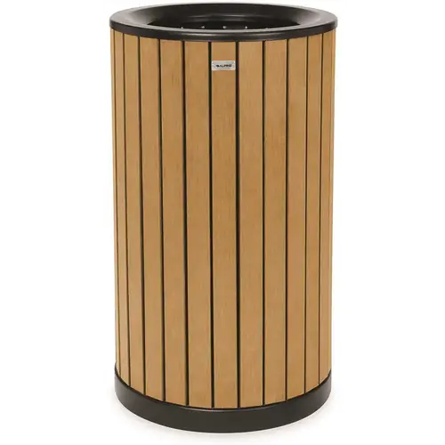 Alpine Industries 32-Gallon OD Steel Trash Receptacle Slatted Wood Style Plast. Design: The Recycled Plastic Cedar Exterior Adds An Earthy And A Natural Aesthetic, Allowing It To Blend Seamlessly Into Its Outdoor Environment.. Hassle-Free: You will never need to worry about chipped or faded paint because recycled plastic doesn t require any painting or staining.. Durable: The recycled material won t crack or splinter, especially in harsh weather conditions.. Low Maintenance: Our substantially sized 32-gallon, leak-proof liner will require less emptying.. Free Flowing: Its slotted bottom will allow rain and snow to pass through and not build up.. Stability: The included mounting hardware enables you to secure the receptacle in place.. Weight: 39.95 lbs.. Capacity: 32 Gallons. Material: Steel and Polystyrene. Dimensions: 33.86 H x 19.69 D x 19.69 W. Opening Dimensions: 12.59 . Mfg #ALP4400-01-CD