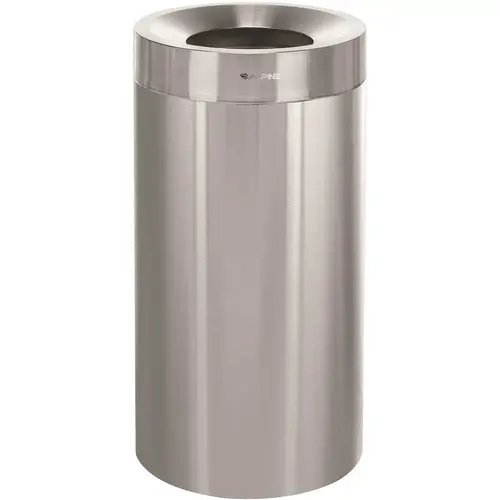 Alpine Industries Stainless Steel Indoor Trash Can, 27-gallon. Open Top Lid. Lid Hides Bag Overhang. Heavy Gauge Stainless Steel. 27-Gallon Capacity. Open Top Designed For Quick And Easy Trash Disposal On-The-Go. Brushed Stainless Finish. Lid Easily Removes For Servicing. Lid Is Easy To Remove, Yet Remains Firmly In Place And Secures Even Full And Heavy Liners. Shipped Fully Assembled. Mfg #ALP475-27