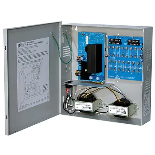 CCTV Power Supply, Input 115VAC 50/60Hz at 0.9A, 16 Fuse Protected Outputs, 6/15VDC at 6A, Grey Enclosure
