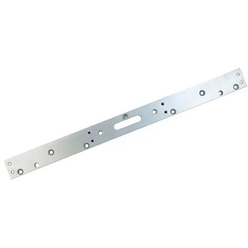 Securitron concrete, wood and aluminum spacer bracket is used to install magnetic locks on most frames where the lock needs to be lowered. It comes pre-drilled for the mounting bolts and wires. Available in clear aluminum only. Securitron MagnaCare lifetime replacement, no fault warranty.