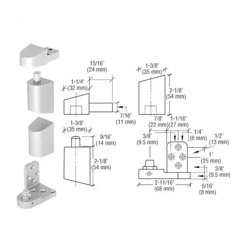 CRL Offset Pivot Sets for commercial doors feature quality machined and diecast components in combinations to accommodate just about any commercial door. Everything you need comes in one box, including the door fasteners and anchors. Each has been illustrated with dimensions for ease of selection. Left or right hand pivot sets are available in satin aluminum and dark bronze finishes. One set per package.