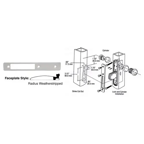 Aluminum Radius Weather-stripped Faceplate for DL2110 Series Long Throw Deadlocks