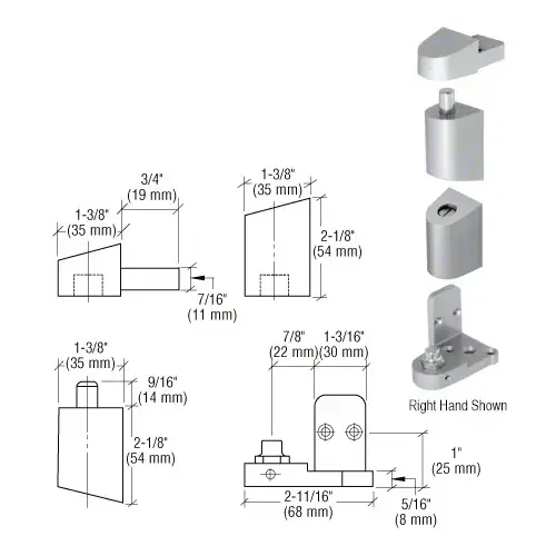 CRL 0P40011R Aluminum Right Hand 0P400 Top and Bottom Pivot Set