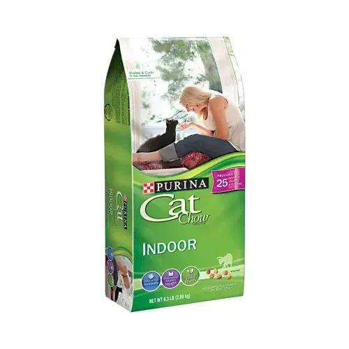 Purina Cat Chow 6.3 lb. Indoor Formula Cat Food is a dry cat food that is designed for adult cats. It contains chicken as the main ingredient and is fortified with vitamins and minerals to help keep your cat healthy. This food is also made with natural ingredients and is free of artificial flavors and colors.