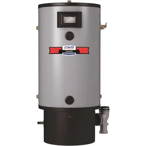 This Polaris high efficiency has a condensing design that operates at up to 96% thermal efficiency which saves money on operating costs compared to a standard 80% efficient gas water heater. The helical internal heat exchanger keeps hot combustion gases in the tank longer to extract more heat into the water. The Tank and helical heat exchanger are constructed from 444 stainless steel for excellent corrosion resistance without the need for an anode.