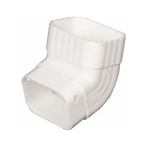 Redirects downspouts parallel to wall or side of house to prevent erosion and foundation damage. UV stabilizers provide durability. Fits 2 x 3 ft downspouts, metal or vinyl. Crush-proof and dent-proof. No sealants or caulking required. Fast, easy installation. Maintenance-free. Never needs paint. Cleans with a hose. White.