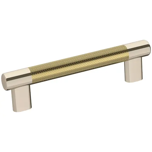 The Amerock BP36558PNBBZ Esquire 5-1/16 in (128 mm) Center-to-Center Pull is finished in Polished Nickel/Golden Champagne.