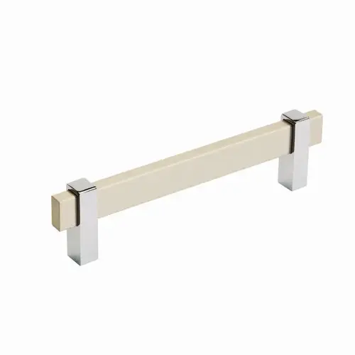 The Amerock BP36724SC26 Mulino 5-1/16 in (128 mm) Center-to-Center Pull is finished in Silver Champagne/Polished Chrome.