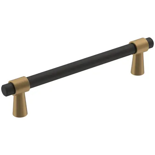 The Amerock BP36859FBCZ Mergence 5-1/16 inch (128mm) Center-to-Center Pull is finished in Matte Black/Champagne Bronze.