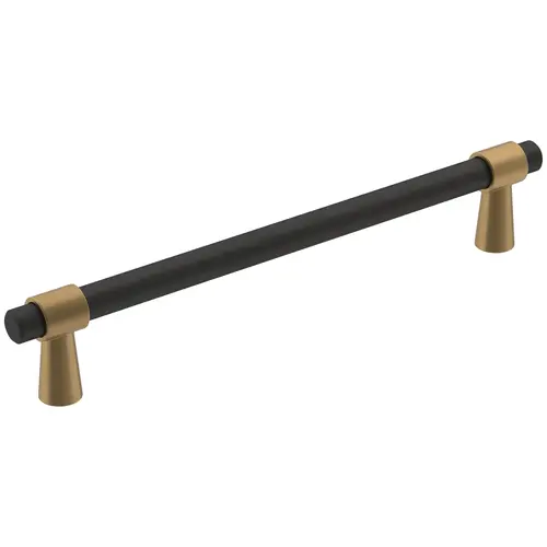 The Amerock BP36860FBCZ Mergence 6-5/16 inch (160mm) Center-to-Center Pull is finished in Matte Black/Champagne Bronze.