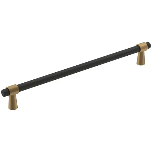 The Amerock BP36861FBCZ Mergence 8-13/16 inch (224mm) Center-to-Center Pull is finished in Matte Black/Champagne Bronze.