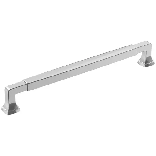 The Amerock BP3689026 Stature 8-13/16 inch (224mm) Center-to-Center Pull is finished in Polished Chrome.