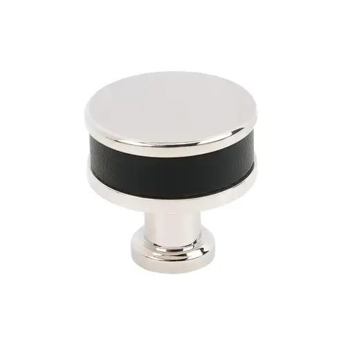 The Amerock BP37535BLPN Fairlane 1-1/4 inch (32mm) Diameter Knob is finished in Black Leather/Polished Nickel.