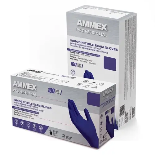If you are a medical or laboratory professional, you wear gloves all day. They are an essential part of your equipment. The no. 1 consideration with gloves is safety. It is imperative that you have the best barrier protection possible against pathogens or contaminants. If safety is tops, however, comfort is 1A. Ammex indigo nitrile powder free exam gloves have you covered on both counts. You will notice the comfort with each pair you put on throughout the day. Once the highly elastic nitrile material reaches body temperature, the gloves conform to the contour of your hand for a perfect fit. They have the fit and feel of latex, without concerns about triggering latex sensitivities. These durable, 4-mil gloves are FDA approved for medical use. They feature textured fingertips and a micro-roughened surface for a dependable grip, even when wet. These chlorinated gloves are powder-free, which eliminates worries about powder inhibiting healing of wounds. Ammex indigo nitrile powder free exam gloves can be an important part of any color-coding system or provide a fun pop of color for shaking up the routine. They also come in light blue and black. Ammex indigo nitrile powder free exam gloves are commonly used by doctors, nurses, dentists, dental hygienists, laboratory workers and first responders. They are also a favorite among pharmacists, veterinary personnel and those who work in biotech industries. Home healthcare providers will find they deliver superior performance, too and theyre great for everyday cuts and scrapes around the house. These ambidextrous, non-sterile gloves are sold 100 gloves per box, 10 boxes per case, in sizes S-XL. Caring for patients is demanding work. For those who desire superior barrier protection and comfort, Ammex indigo nitrile powder free exam gloves more than satisfy expectations.