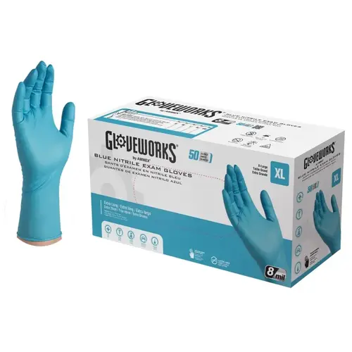 AMMEX Non-Sterile Disposable Gloves, XL, Nitrile, Powdered/Powder Free: Powder-Free, Blue, 300 mm L, Cuff Type: Beaded, Latex Free: Yes, 7 mil Thick, Exam Grade