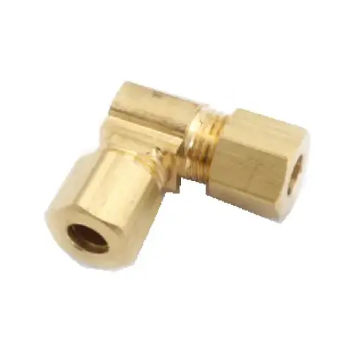 Anderson Metals Tube Union Elbow, Nominal Size: 1/4 in, Angle: 90 deg, 300 psi, Operating Temperature: -65 to 250 deg F, Brass