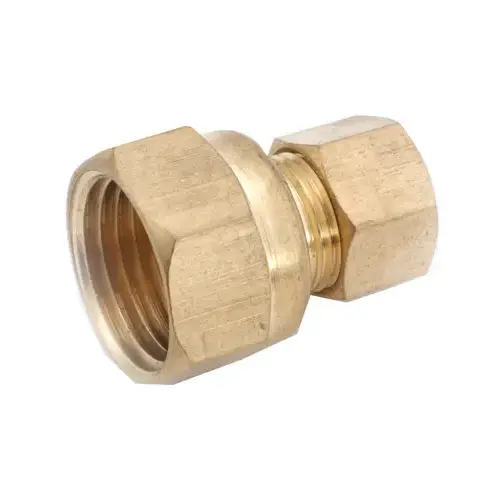 Anderson Metals Tube Adapter, Nominal Size: 1/4 x 3/8 in, Compression Connection, 300 psi, Brass