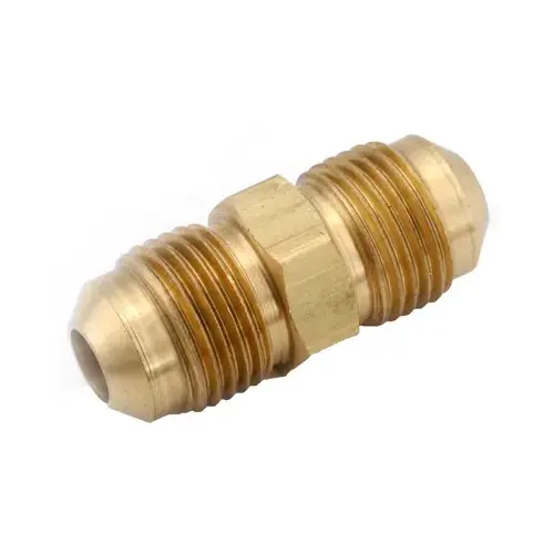Anderson Metals Pipe Union, Nominal Size: 1/4 in, Flare Connection, 1400 psi, Operating Temperature: -65 to 250 deg F, Brass, Suitable for: Aluminum, Brass, Copper and Steel Tubing