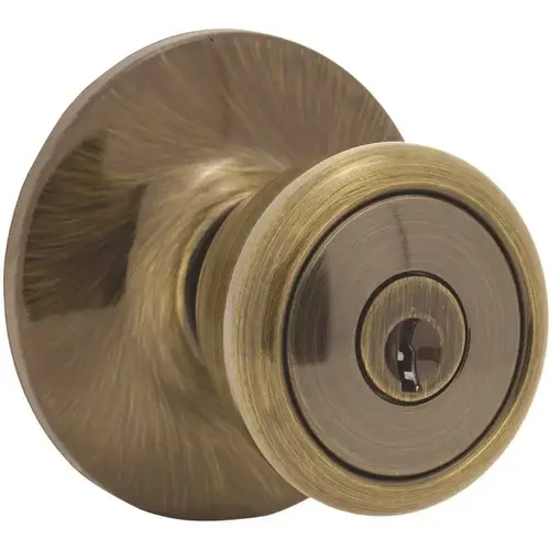 The entry knob features adjustable latch that fits all standard doors types. With ANSI Grade 3 standard, the product is suitable for exterior residential door preparations. The knob can be locked or unlocked by key on exterior or turn button on interior.