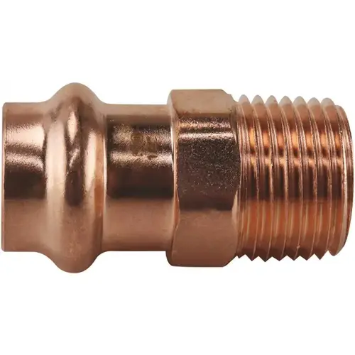 The 1/2 in. Copper Press x MPT Male Adapter copper press fitting is NSF listed, lead free and features a robust EPDM O-Rings to ensure a clean leak free seal. Copper press fittings are designed for mechanical connection to ASTM B88-Type K, L and M copper tubing in hard drawn condition. Utilizing a hydraulic press tool, a watertight seal can be made in seconds without no flame, solder or flux. Each press fitting comes standard with leak before press technology to easily identify a fitting that has not been pressed. Connections can be made in wet or dry conditions reducing project downtime. These fittings are available in sizes from 1/2 in. to 1 in. and are compatible with all major hydraulic press tools.