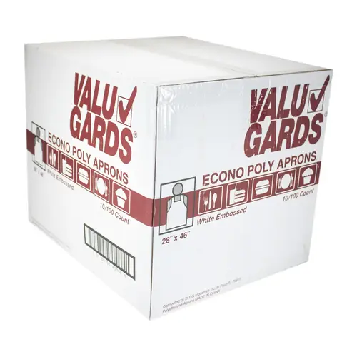 APRON ECONOMY POLY WHITE EMBOSSED LIGHT DUTY 28X46 10-100 EACH