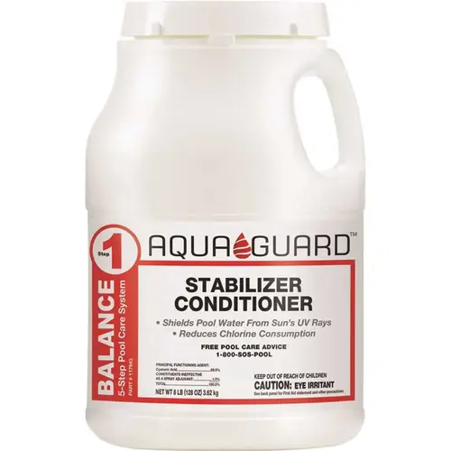 Aqua Guard Stabilizer Conditioner is used to raise the stabilizer level in your swimming pool. Maintaining the proper stabilizer level in your pool shields the chlorine level from the destructive effects of sunlight. An essential product if you use liquid or calcium-based chlorine.