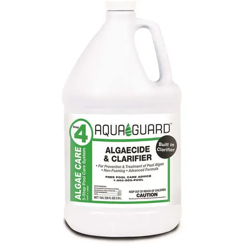 Aqua Guard Algaecide and Clarifier is a combination algaecide and clarifier for all pool types. This ready-to-use product is non-toxic and non-foaming. 1 Gal. will treat up to 53,000 Gal. of pool water.