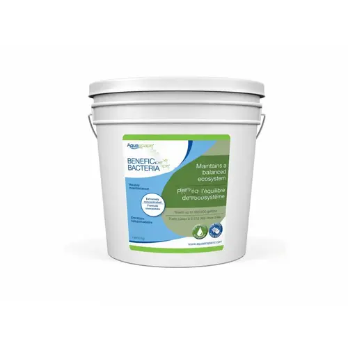 Aquascape 98950 7 lb Beneficial Bacteria Concentrate. Aquascape Beneficial Bacteria Concentrate is a dry water treatment that helps to provide clean, clear, and healthy water conditions, significantly reducing pond maintenance. Each container of Aquascape Beneficial Bacteria Concentrate is packed full of eight pure strains of concentrated beneficial bacteria and is completely safe for fish, plants, pets, and wildlife. Our Beneficial Bacteria Concentrate will effectively reduce fish waste, organic plant material, sludge, and excess nutrients in your pond, allowing you to spend more time enjoying your water feature and less time maintaining it. Our bacteria contains a 3 billion CFU per ounce potency, ensuring consistently effective treatment, and the included marigold and vitamin B help to bring out the natural colors of your fish while maintaining proper fish health. The included easy-to-use scoop measures 1,300 gallons of treatment per scoop, making application simple.
