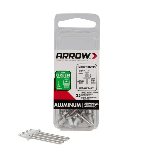 Arrow RSAW1/8 Pop Rivet, Short, 1/8 in L, Aluminum White - pack of 25