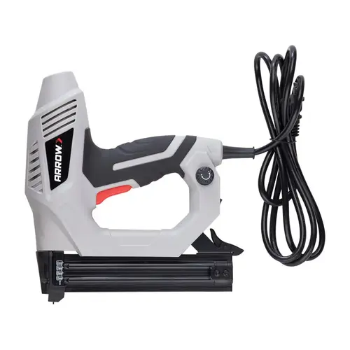 The Arrow ET200BN brad nailer does it all. The tool's adjustable depth control knob allows the operator to set the correct amount of power for every job matching the size of the brad nail and the materials being nailed together. Ideal for wood trim and lattice work, the ET200BN features a soft comfort grip, oversized trigger, contact safety, six foot power cord and convenient quick release magazine.