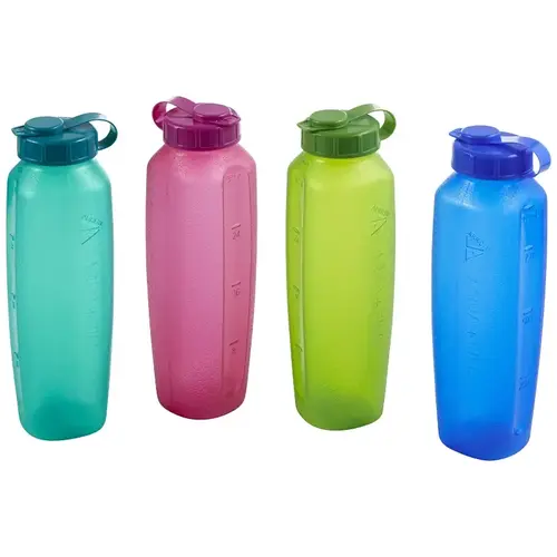 Refillable. Use and reuse every day. Fits into cup holders. BPA-free. Comes in assorted colors.
