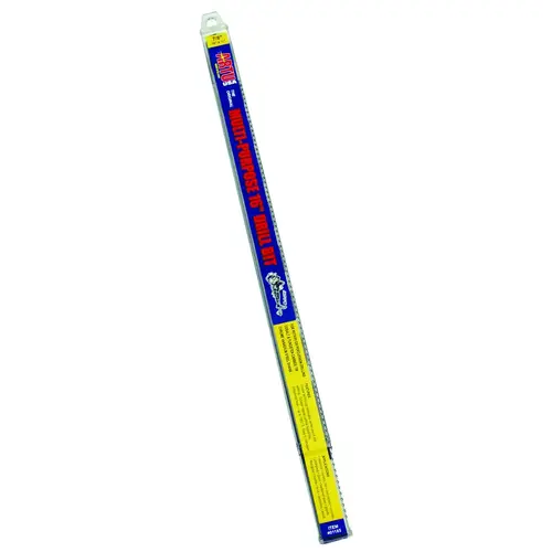 For rotary or percussion drilling. Chrome vanadium steel shank with cobalt and tungsten carbide tip that withstands temperatures up to 1900 deg F. Special negative back grinding enables tip to bore through applications such as masonry, ceramic tile, concrete, brick, fiberglass, plexiglass, cast metals, hardened steel, granite, marble, woods and plastic with a filing action rather than a cutting action. No center punch required, eliminates walking and can be re-sharpened. This includes aluminum, angle iron, copper, galvanized pipe, brass and stainless steel.