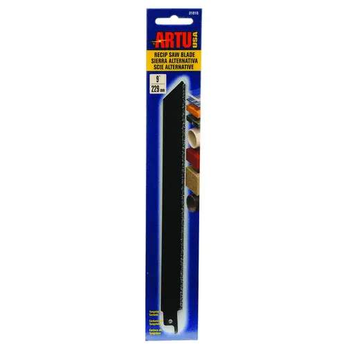 ARTU Reciprocating Saw Blade, Tungsten Carbide Cutting Edge, 1/2 in Tang, 12, 9 in Length, 3/4 in Width, Applicable Materials: Cast Metal, Cementboard, Ceramic, Fiberglass, Flagstone or Slate, Hardwood, Laminate, Marble, Plywood, PVC, Reinforced Cement, Suitable for: All Popular Makes of Power Tools