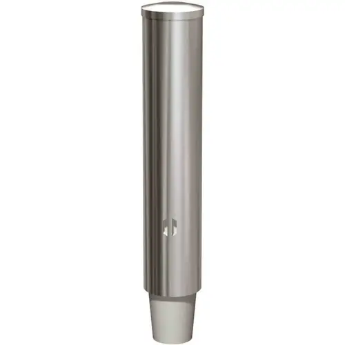 The Round Paper Cup Dispenser dispenses 100 flat bottom cups. It's adjustable for 3 oz. through 6 oz. cups. Made of Stainless steel with bright finish.