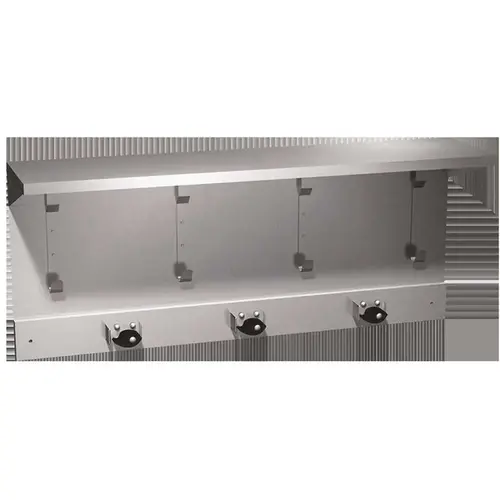 ASI AMERICAN SPECIALTIES, INC. Shelf With 4 Utility Hooks And 3 Mop Holders Shelves/utility Hook & Mop Strip (4 Hooks, 3 Holders) 34 Fabricated of type 304 satin finish stainless steel, this shelf is 8³ (203 mm) deep with 3/4³ (19 mm) return for rigidity Mfg #10-1308-3 Shelves/utility Hook & Mop Strip Fabricated of type 304 satin finish stainless steel, this shelf is 8³ (203 mm) deep with 3/4³ (19 mm) return for rigidity 4 Hooks, 3 Holders 34