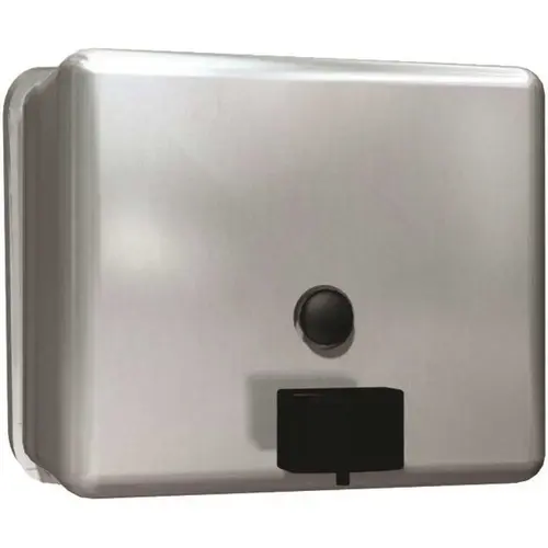 The profile liquid soap dispenser features an all-purpose valve that dispenses liquid, lotion and detergent-type soaps. With a capacity of 48 fl. oz. (1.4 l), it reduces refills. It has a tamper-resistant refill window with concealed fastening and vandal-resistant hinged filler-top.