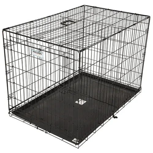 Made of sturdy, heavy-gauge, rust-resistant wire for strength and durability. Easy fold-down design. Built-in moat helps keep your dog dry. Comes complete with the Grow With Me Divider, allowing you to adjust the size of the interior space as your dog grows.
