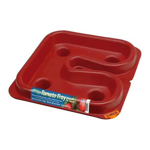 Tomato tray reflects red light back to plants which helps stimulate growth. Split tray design for easy installation around plant stem. Increases tomato plant yield by up to 40 percent. Helps protect all vine crops against droughts and cutworm, brings earlier, tastier harvests. Red in color. Includes 3 tray per pack.