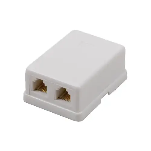 White Dual Modular Jack, 4 Wire Surface Mount, Allows Modular Jacks To Be Placed Anywhere.