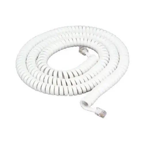 25', White, Coiled Modular Handset Cord, With Attached Modular Plug Ends, Blister Carded.