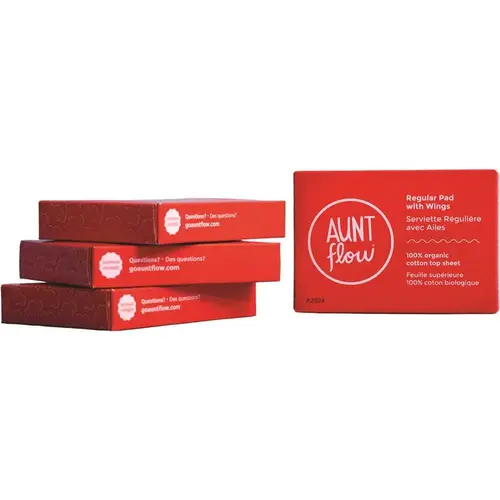 Aunt Flow #4 Vended Pad Boxes Organic Cotton Nt Flow's Compact #4 Vended Pad Boxes Are Uniquely Designed To Maximize Dispenser Capacity, Saving Janitorial Teams Time When Restocking Soft, comfortable menstrual pad with wings to secure in place Made with a 100% organic cotton top sheet OCS-certified organic cotton No synthetics, rayon, dioxins, or dyes Plastic-free, cardboard packaging Regular absorbency Designed to fit Bobrick, ASI, Hospeco, and Frost dispensers Friendly reminder - #4 vended pad boxes DO NOT fit in Aunt Flow dispensers Mfg #PADS-ORG-UNVL-300
