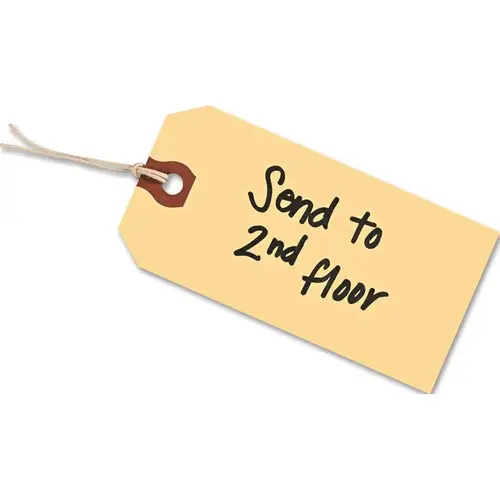 These tags feature a reinforced hole to help ensure your shipping information stays put for the journey, no matter how long or short. Extra reinforcement allows the tag to be held firmly without ripping through the cardstock. Provides a smooth writing surface. Includes 12" twine for each tag. Size: 4 3/4 x 2 3/8; Color(s): Manila; Series: N/A; Number of Duplicates: N/A.