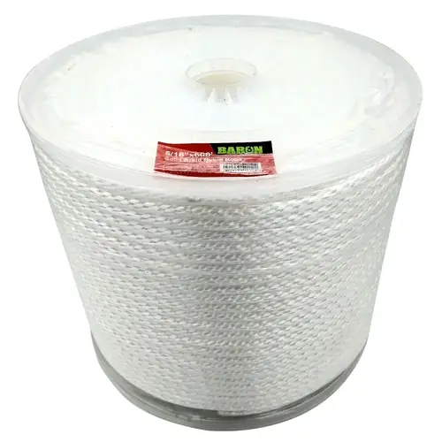 BARON Rope, Working Load Limit: 192 lb, Rope Construction: Solid Braided, Nylon/Poly, White, 5/16 in Dia, 600 ft L