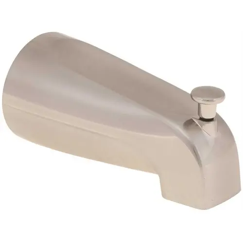 Zinc bathtub spout with top diverter and adjustable Slide Connector. 1-3/4 in. telescoping fit. CUPC Certification. Brushed nickel plating. Easy to install.