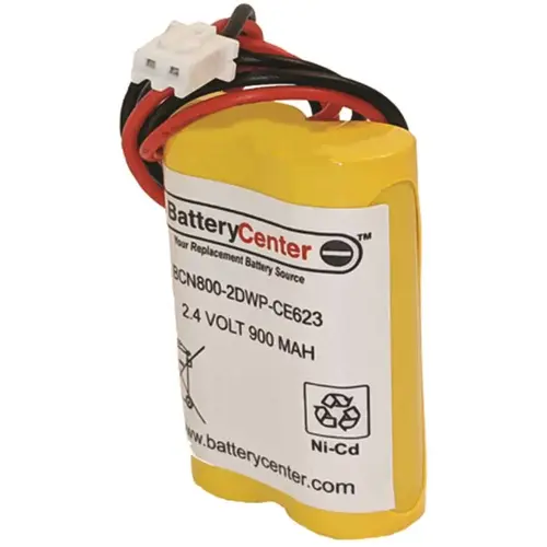 Rechargeable 2.4-Volt 900 mAh nickel cadmium (NiCd) battery replacement for emergency lighting. Includes wiring harness with connector. This battery typically has 20% to 40% more capacity than other regularly available batteries of the same size and can support up to 500 charge discharge cycles or 5-years standby power under normal conditions. Nickel cadmium batteries are commonly found in emergency lighting, alarm/security systems, backup power devices and other electrical devices. This is 1 battery, please verify quantity needed for your application before ordering.