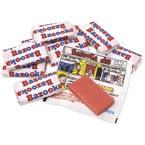 Bazooka Original Bubble Gum Tub. Original Bazooka Bubble Gum Is One Of A Kind. Unwrap Each Piece For Fun Games And Puzzles As Well As Digital Codes That Unlock Exclusive Online Content. Shelf Stable Gum Makes A Great Pantry Item, Perfect Treat To Have Around The House. With 225 Pieces In This Bulk Tub, There Is Plenty For The Candy Buffet, Gift Bags Or To Stuff The Pinata At Your Next Birthday Party. Mfg #261
