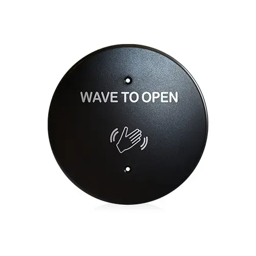 Microwave Touchless Actuator, Round Plate, Text & Hand Logo, Adjustable 4 to 24 In, 12-24 VAC/DC, Black