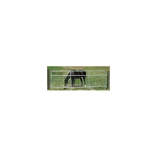 Square corner galvanized gate with welded-in 6 ga "Hog" mesh. Variable spacing in mesh is suited for small animals.