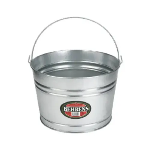 For household and utility use. Double-seamed bottom, reinforced top. Easy carry, extra heavy bail handle. 14 in x 8-3/8 in H.